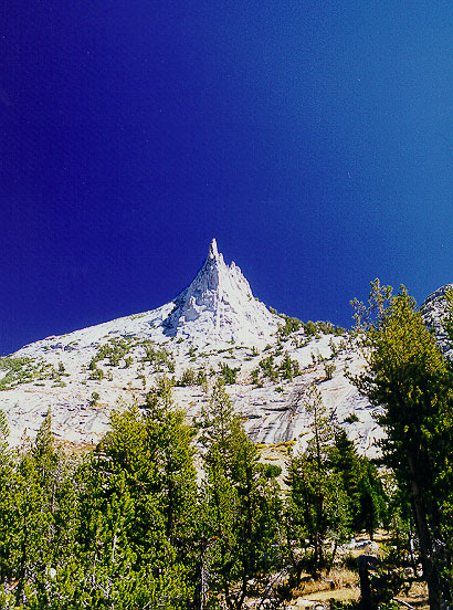Something about the knifelike profile of Cathedral Peak (10,900') really captivates me. When cynical, historically myopic, 20th century atheists see such physically improbable landforms, even they must concede something to the ancients who wondered what god could create such a thing.