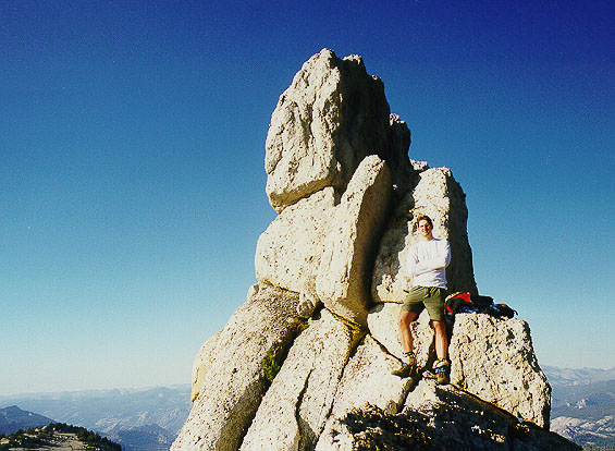 Morgan near the top of the north arete of Tresidder Peak. As you can see, we were foiled about 15 feet from the absolute summit. The photo lacks the appropriate depth of field, because I wasn't safely able to climb the route to my right without jumping 5 feet or so laterally.