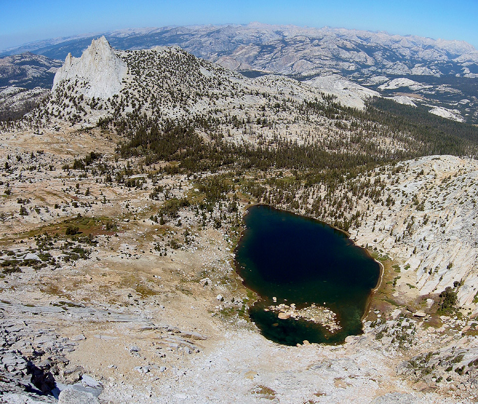 Cathedral Peak and Budd Lake from Echo Ridge.