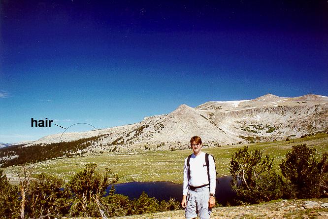 Morgan above Lower Gaylor Lake. Surprising you can see my face through the swarming mosquitoes. The region behind me looks inviting...
