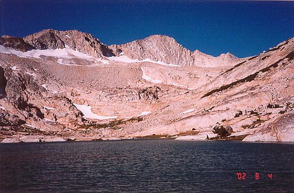 One of the Conness Lakes and the peak itself from use trail above Greenstone Lake.