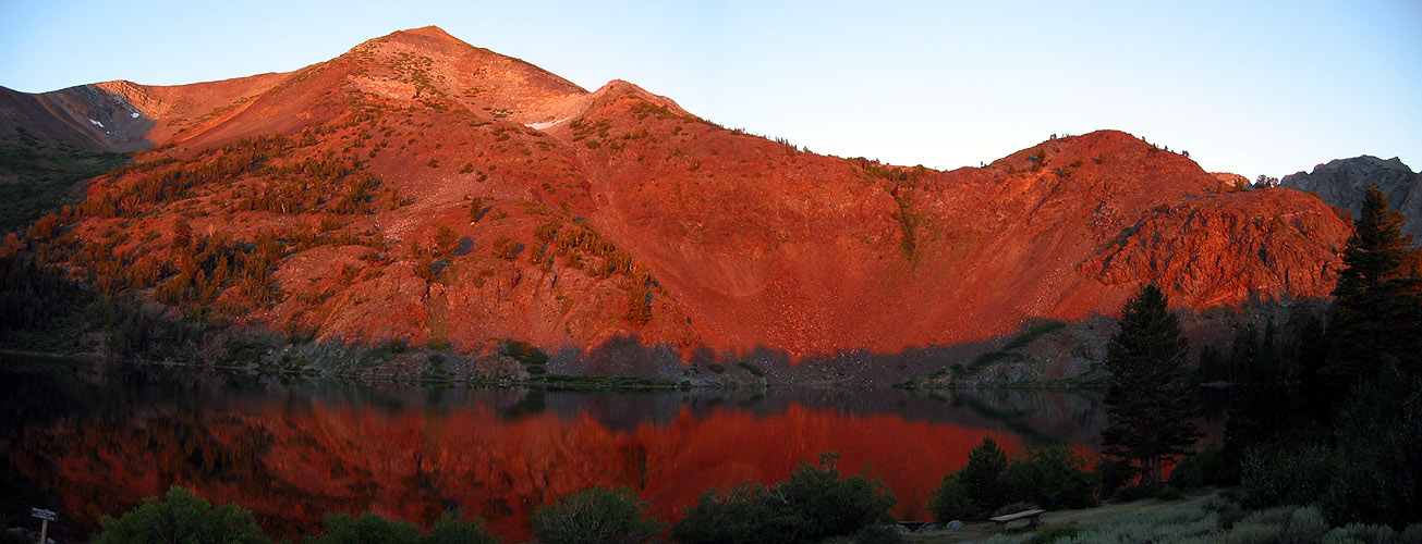 The alpenglow on Black Mountain (actually its foresummit; true summit is hidden) and the corresponding reflection in the largest of the Virginia Lakes was enough to get me out of my sleeping bag.