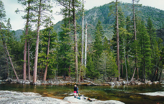 Rob and Debie on the shore of Tiltill Creek. Idyllic water and large, large trees...