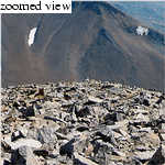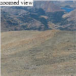 After an hour or so of elapsed time, we crest a small ridge and finally re-glimspe Mount Dana's summit. We move uphill, across the grassy slopes of a high cirque, amazed at how enjoyable this cross-country route has been. Soon we are plying our way up the well-beaten use trail toward the summit, meeting a few parties on the way down. Although the summit looks like a pile of slag from a distance, it is actually more granitic than metasedmentary (a la Gibbs, Koip, Kuna, et al.), so the talus tends to be a bit more stable. Within 2 hours and 15 minutes of starting, we're on the summit. We meet an older (mid 40's) gentleman on the summit and chat for a while. Soon a younger dude in dreadlocks, panting heavily, joins us. We eat a lunch on the summit and bask in windless conditions for 30 minutes. Great views all around, though I admittedly am disappointed by heavily smoky/smoggy conditions to the west. Still, views to Mono Lake are unparalleled compared to what I've seen (Bloody Canyon, Koip Peak, Dunderberg Peak), and the Dana Plateau looks really neat.