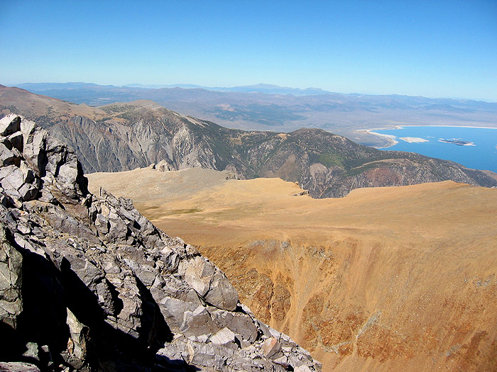 Zoom of Dana Plateau and Mono Lake from summit of Mount Dana.