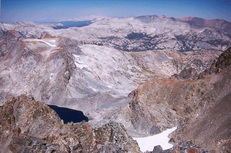 View to the north from summit of Mount Ritter. You can see well to Koip/Kuna/Parker Peaks, as well as down Lyell Canyon. Mount Conness is in the far distance, unresolvable on this image.