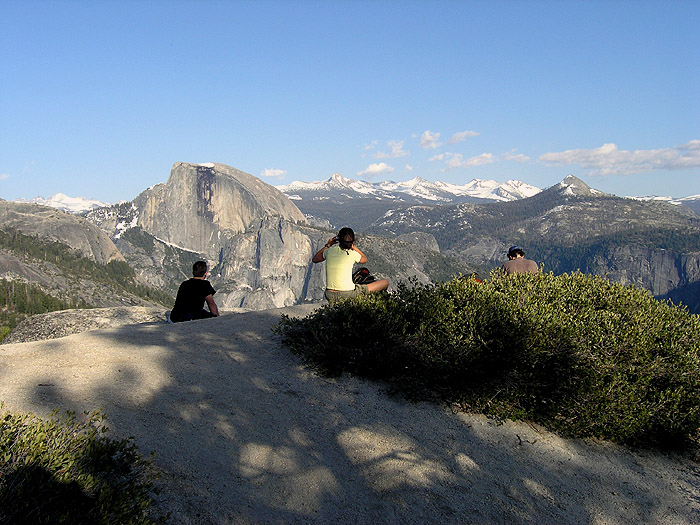 The group eats Turkey Jerky and animal crackers on Yosemite Point. It doesn't get any better than this!
