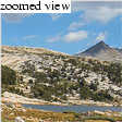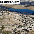 We found a good campsite with a nice view of Rafferty Creek Valley near Fletcher Lake by 10:30, for a respectable 2h45m time over an 8-mile route with a mere 1500 feet of elevation gain. Kim relaxed while I set up the tent, and we soon at lunch in preparation for a yet-to-be-determined dayhike. We were feeling kind of lethargic after lunch, so a climb of Vogelsang Peak seemed out. Instead, I suggested that we hike northwest to explore the region near Evelyn Lake. Peak 11500' looked well-positioned to get a birds-eye view of the area, particularly of the forbidding Ireland Lake, which I had always wanted to see.