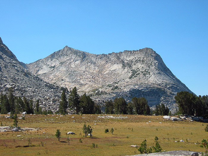 Zoom on Vogelsang Peak on the afternoon of September 13, 2003, from our campsite near Fletcher Lake.