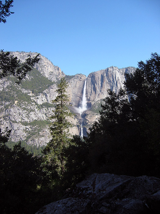 Yosemite Falls, May 1st 2004. We weren't too hot on the way up, but on the way down, we were wishing that we could have some of the spray from the falls to cool us off.