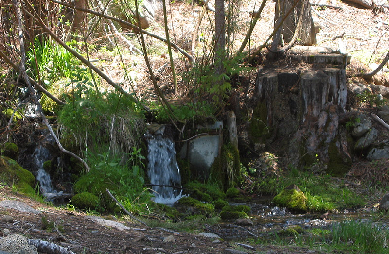 A scenic cascade of water near a water tank provides a nice rest spot.