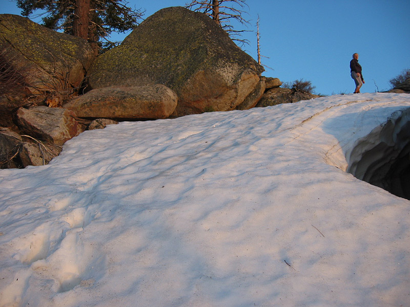 Hari climbing the last section of the snowfield below Smith Peak's summit.