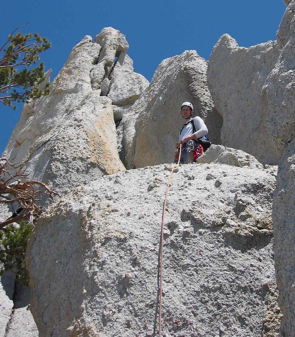 Posing on a 15-foot high block above the first belay. The next 20 feet is a step up an open book (5.2-5.4).