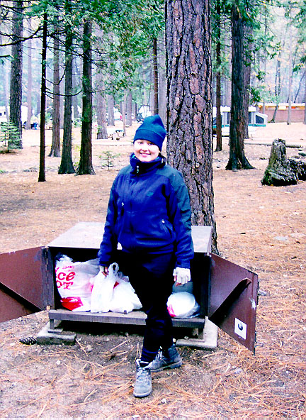 Kim in our camp. Thankfully this photo doesn't show our neighbor's camp, complete with a 50-foot RV, four Rottweiler dogs, and an insane, wife-beating husband. But, in keeping with this gallery's theme of levity, I'll stop now.