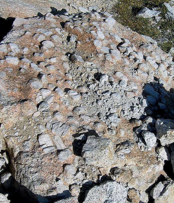 Large feldspar crystals in Vogelsang Peak granite. Excellent for climbing.