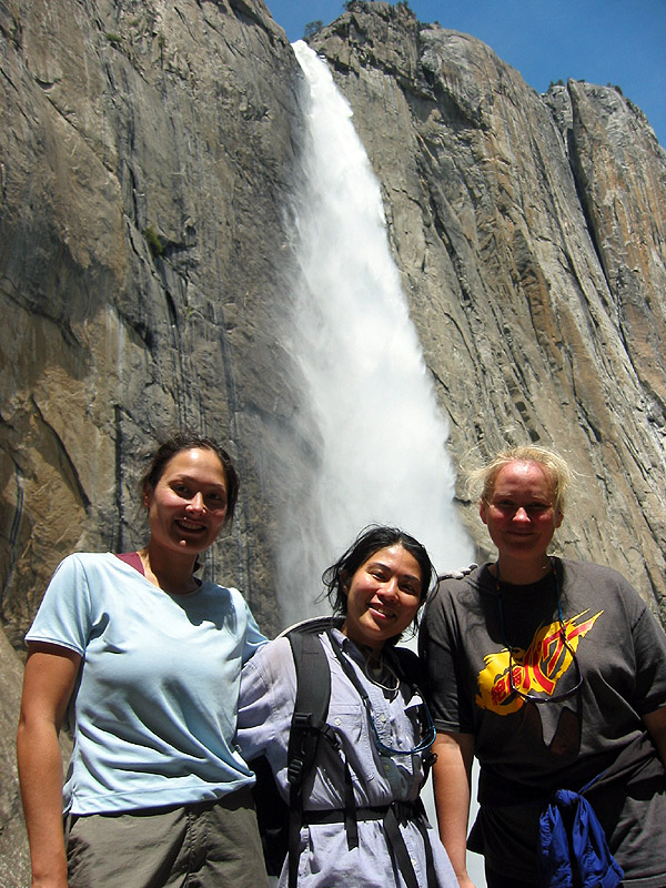 The group and Upper Yosemite Falls on the way back down.