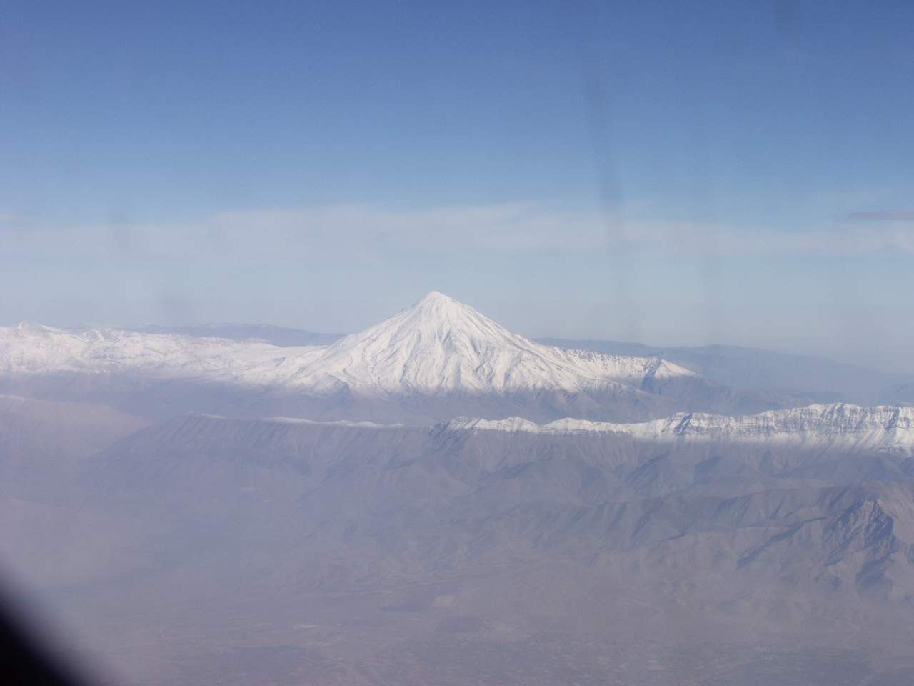 Damavand, highest summit in Iran, from an aircraft window. Photo by Taghi Minbashi.
