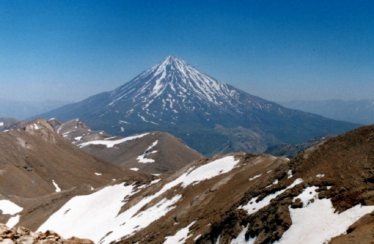 here I attached a photo of Damavand which I took it above Dokhaharaan peak(north-west to Damavand) on July 2001.