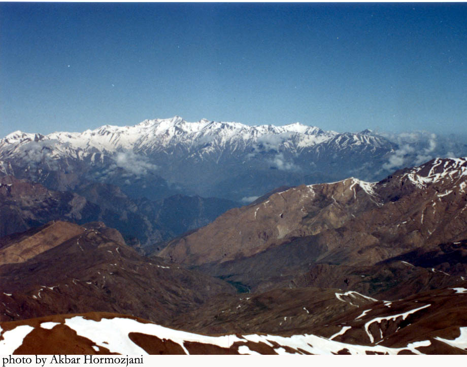 Takht-e-Solaiman mountains from eastern view. Alam-kuh summit is in the middle part, which is the second highest peak in Iran (4850 m). This photo has been shot by Akbar Hormozjani from "Azaad kuh" peak by a Tele-200 lens.